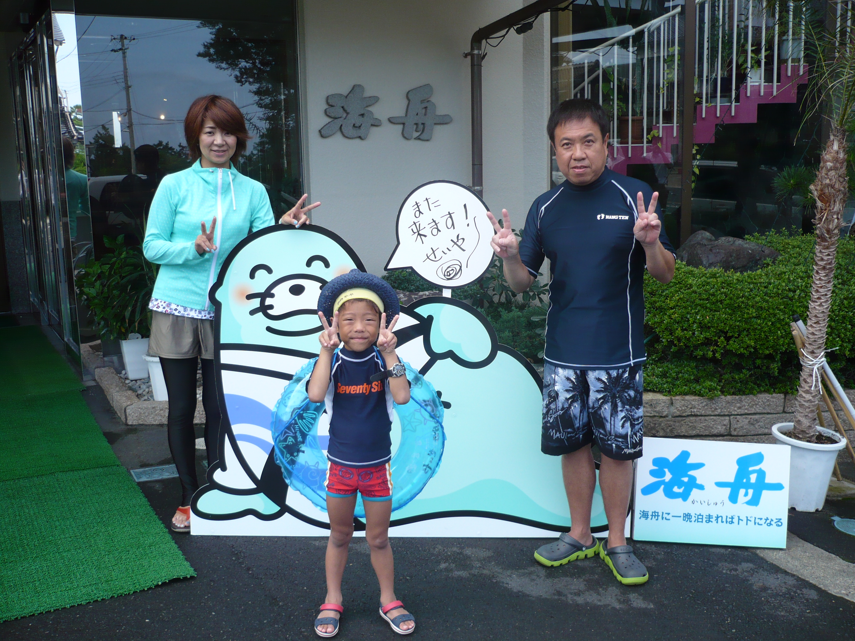 8月28日の記念撮影。 海水浴のお客様も減ってきましたので 海に行かれたお客様も貸切状態でしたと満足そう♪ またのお越しをスタッフ一同心よりお待ちしております。 ご宿泊ありがとうございました。