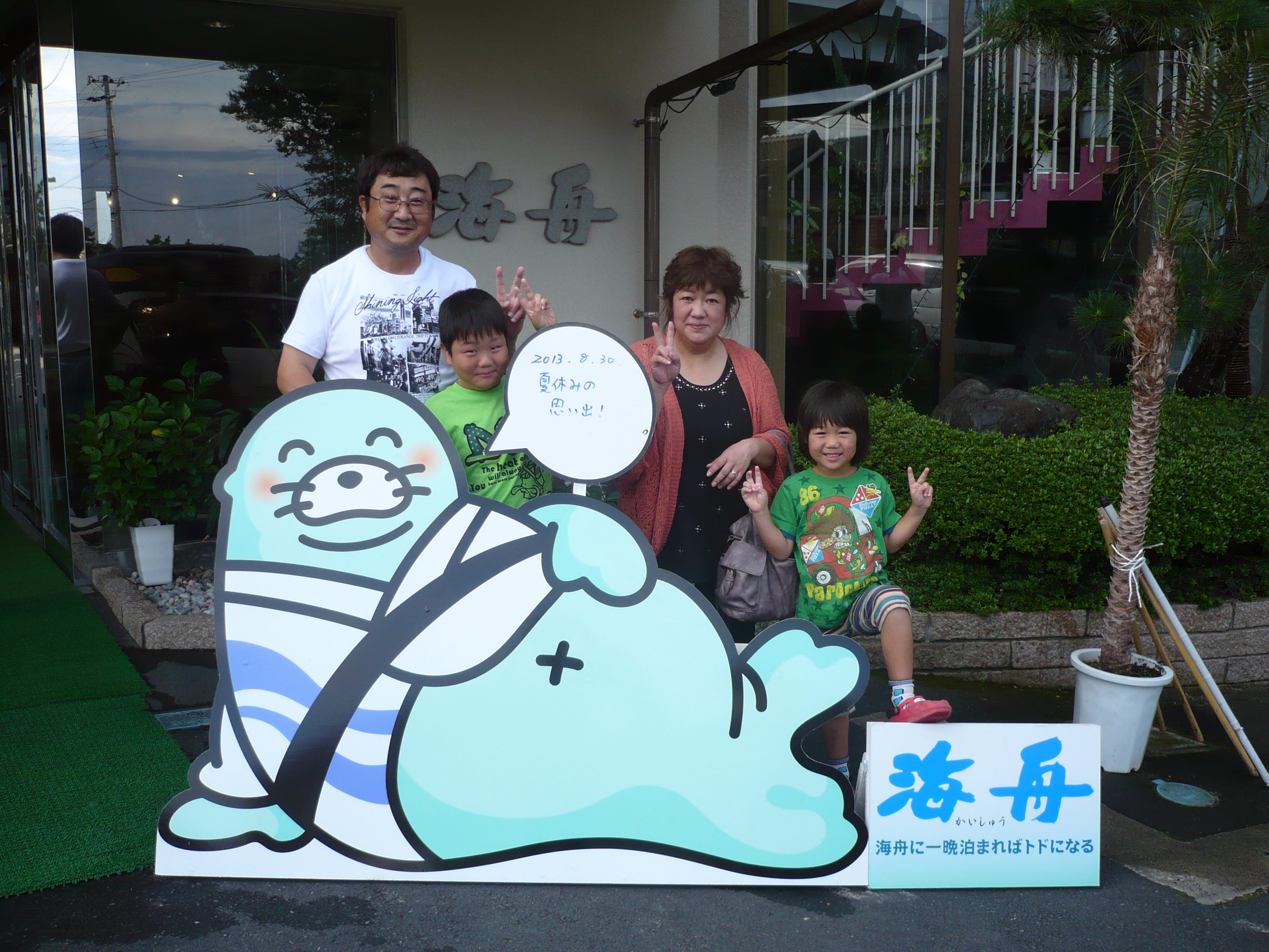 8月30日の記念撮影。 昨日は海水浴に行かれるお客様が多かったように思います。 当館で楽しい思い出作りが出来ましたでしょうか? またのお越しをスタッフ一同心よりお待ちしております。 ご宿泊ありがとうございました。
