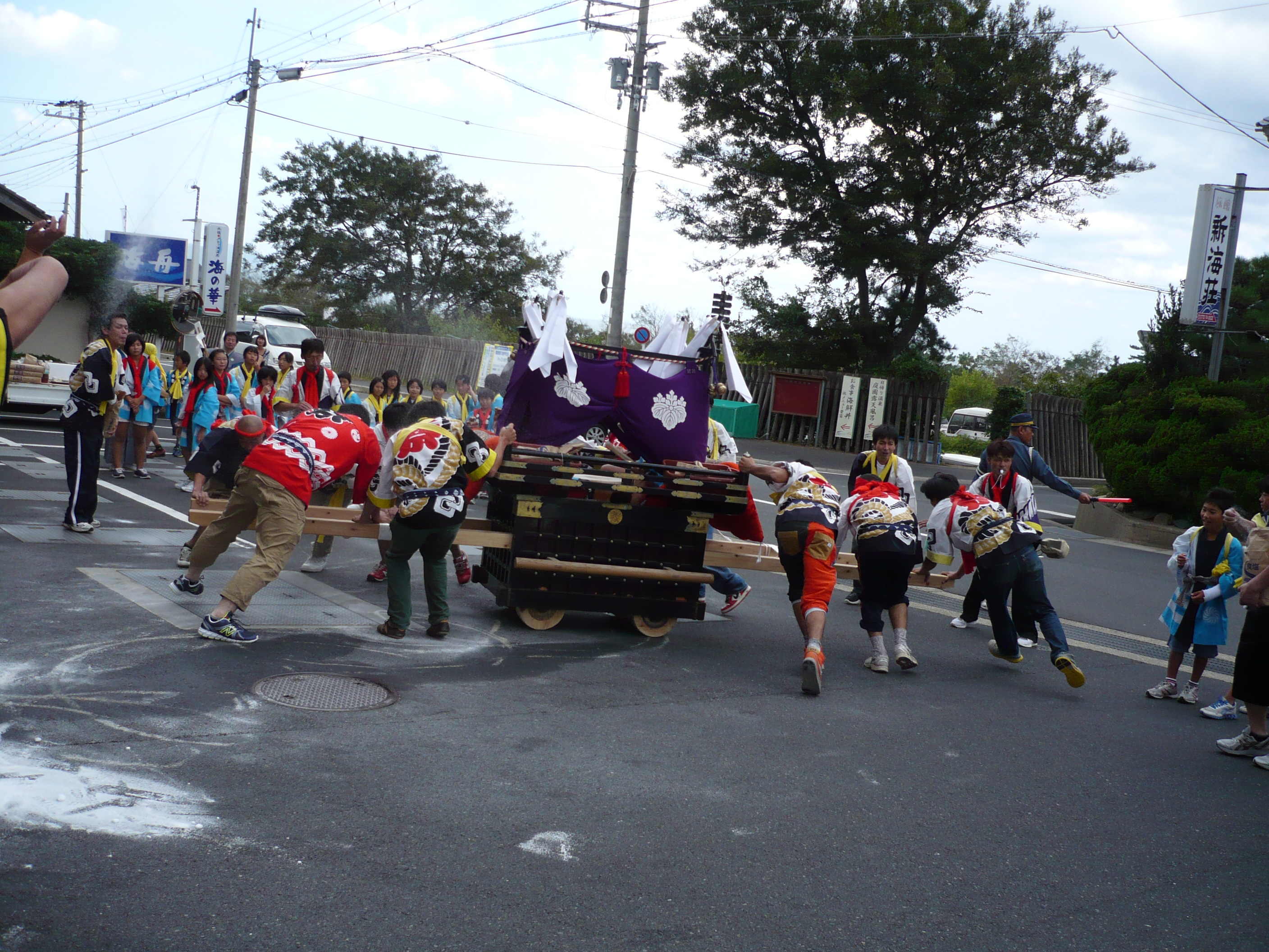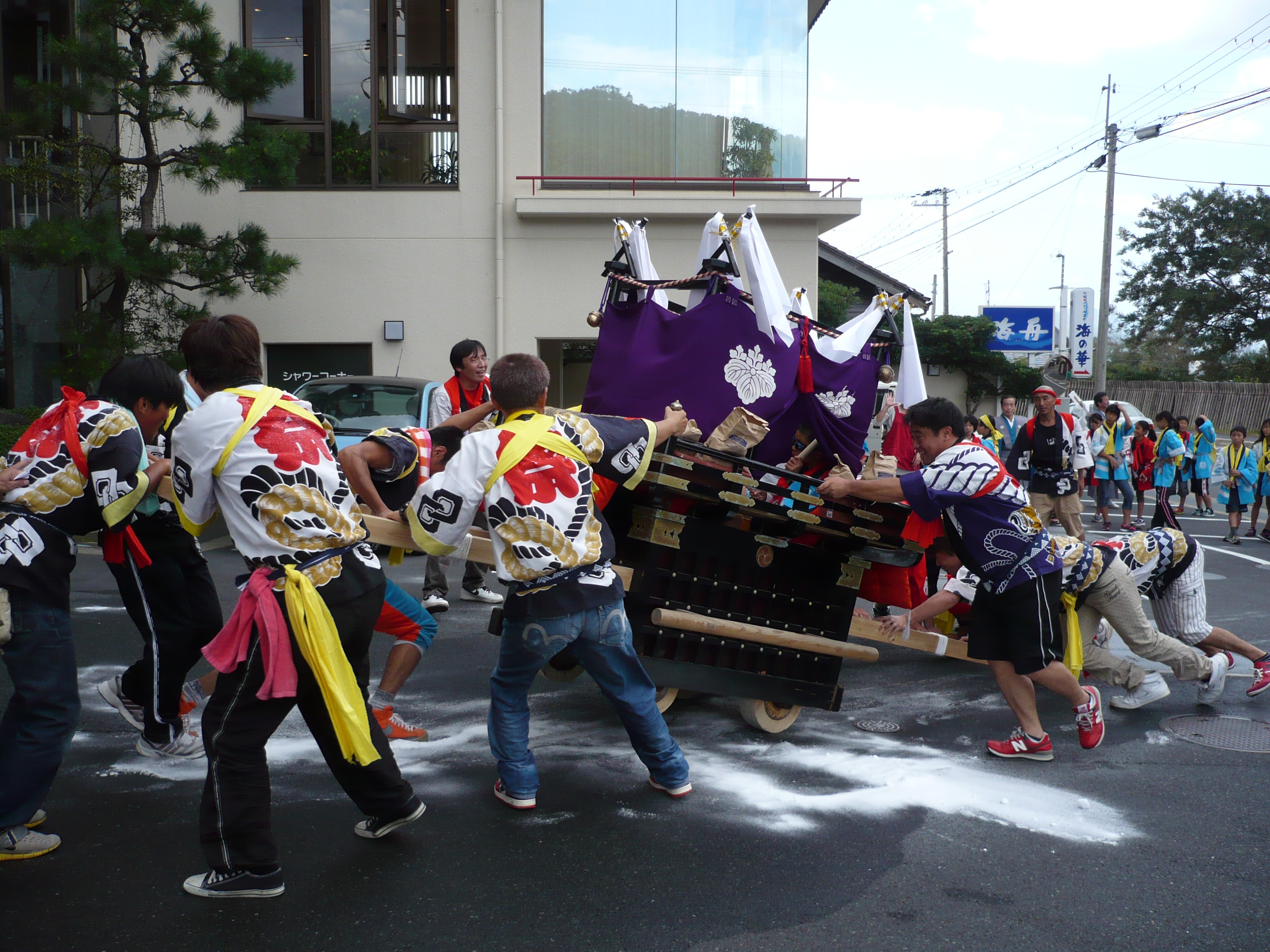 そして12日、13日は秋祭りでだんじりが町内を練り歩いていました。