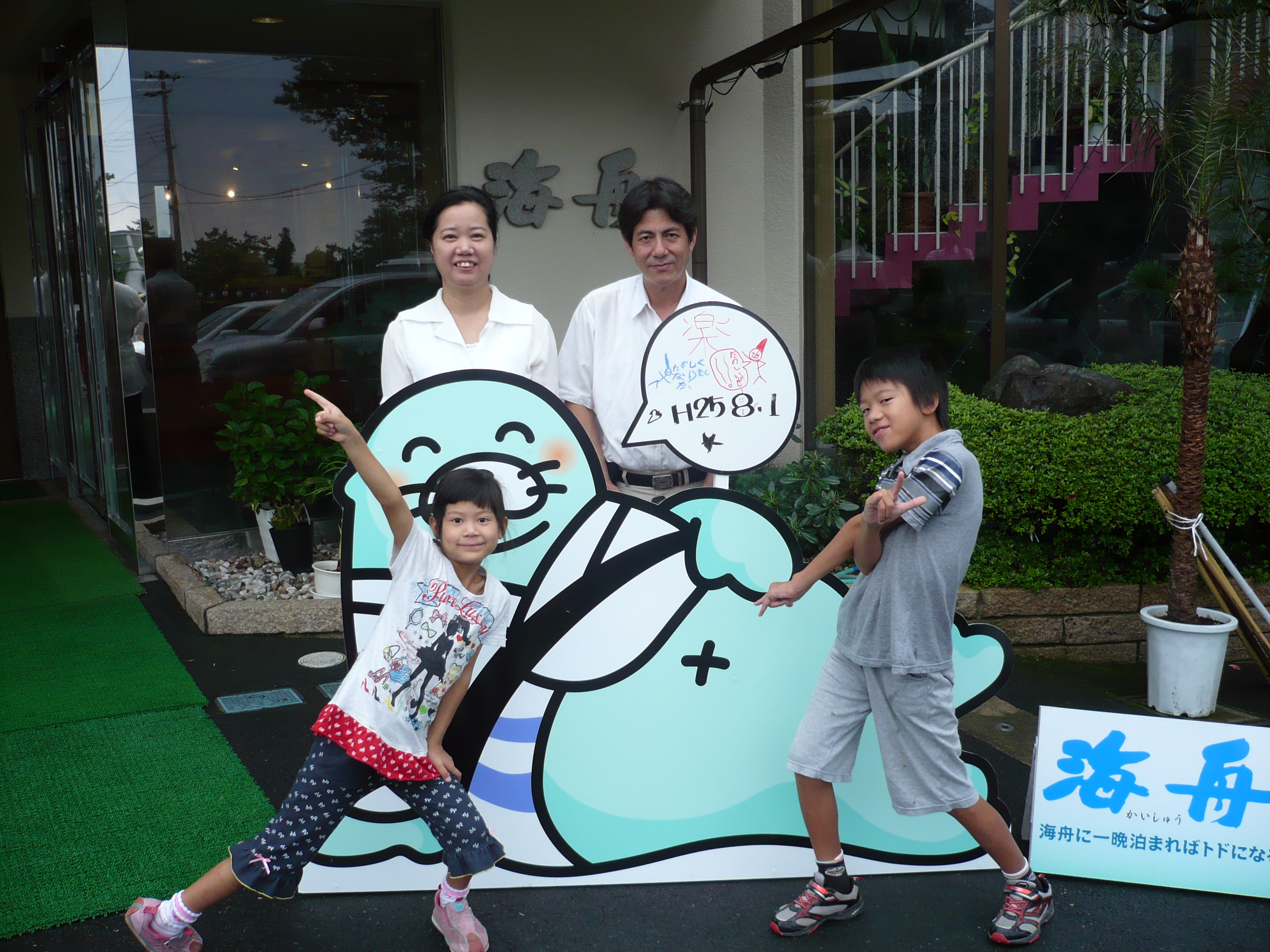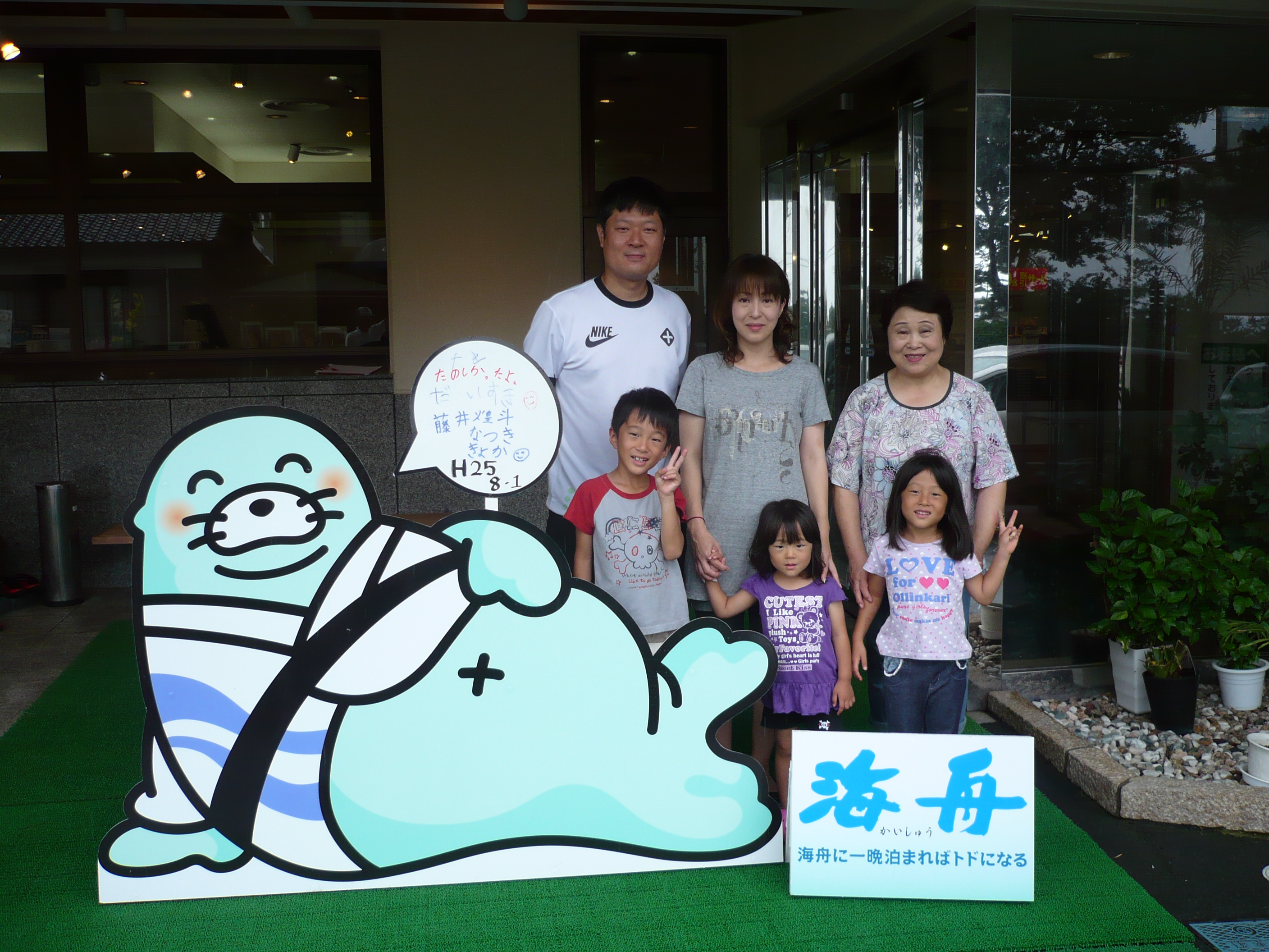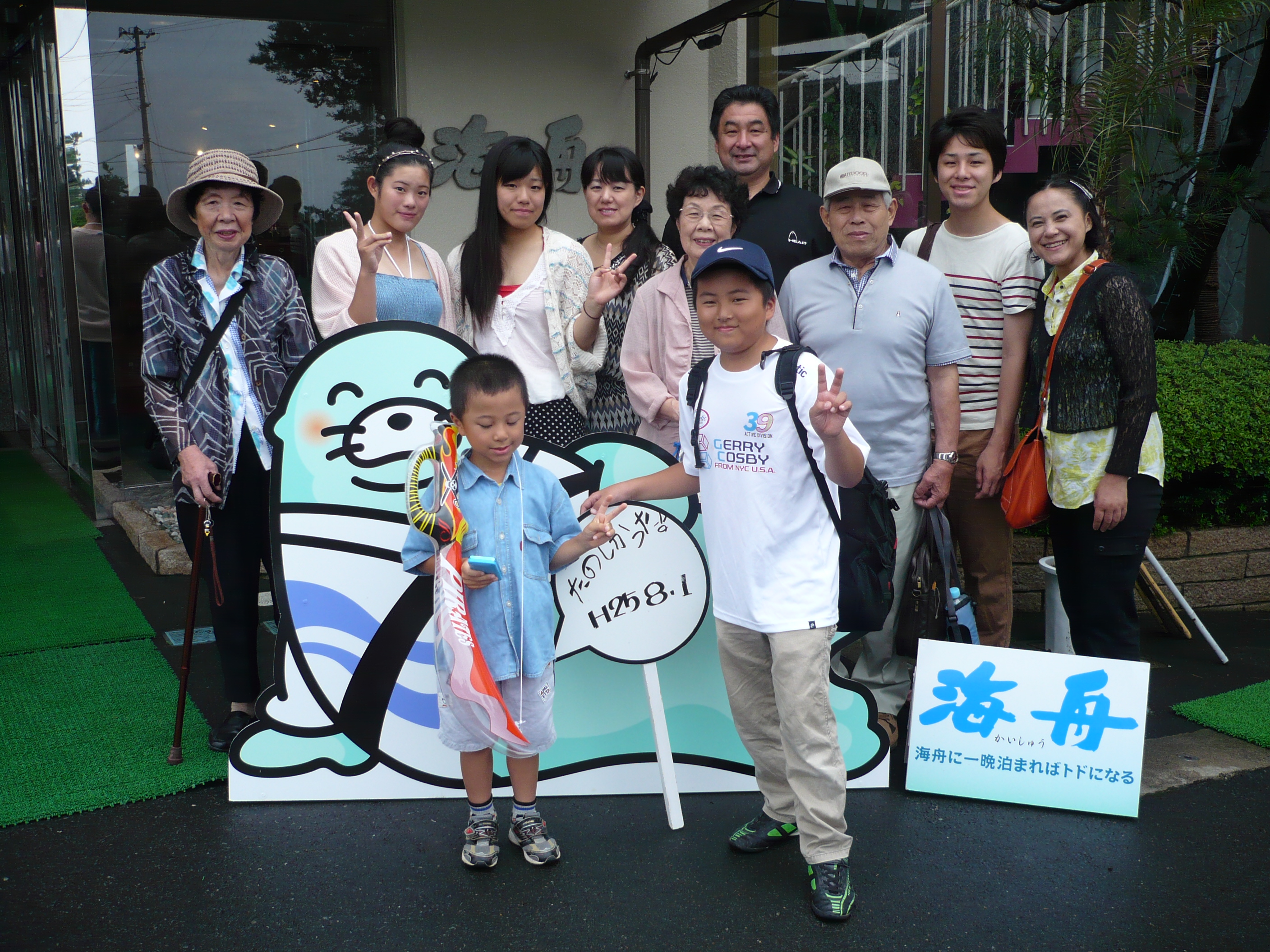 本日の記念撮影。 本日は朝から大雨警報が発令していたので、残念ながら朝から遊泳禁止となっていました(>_<) またリベンジに泳ぎに来て下さいね☆ 皆様のお帰りをスタッフ一同心よりお待ちしております。 ご宿泊ありがとうございました。