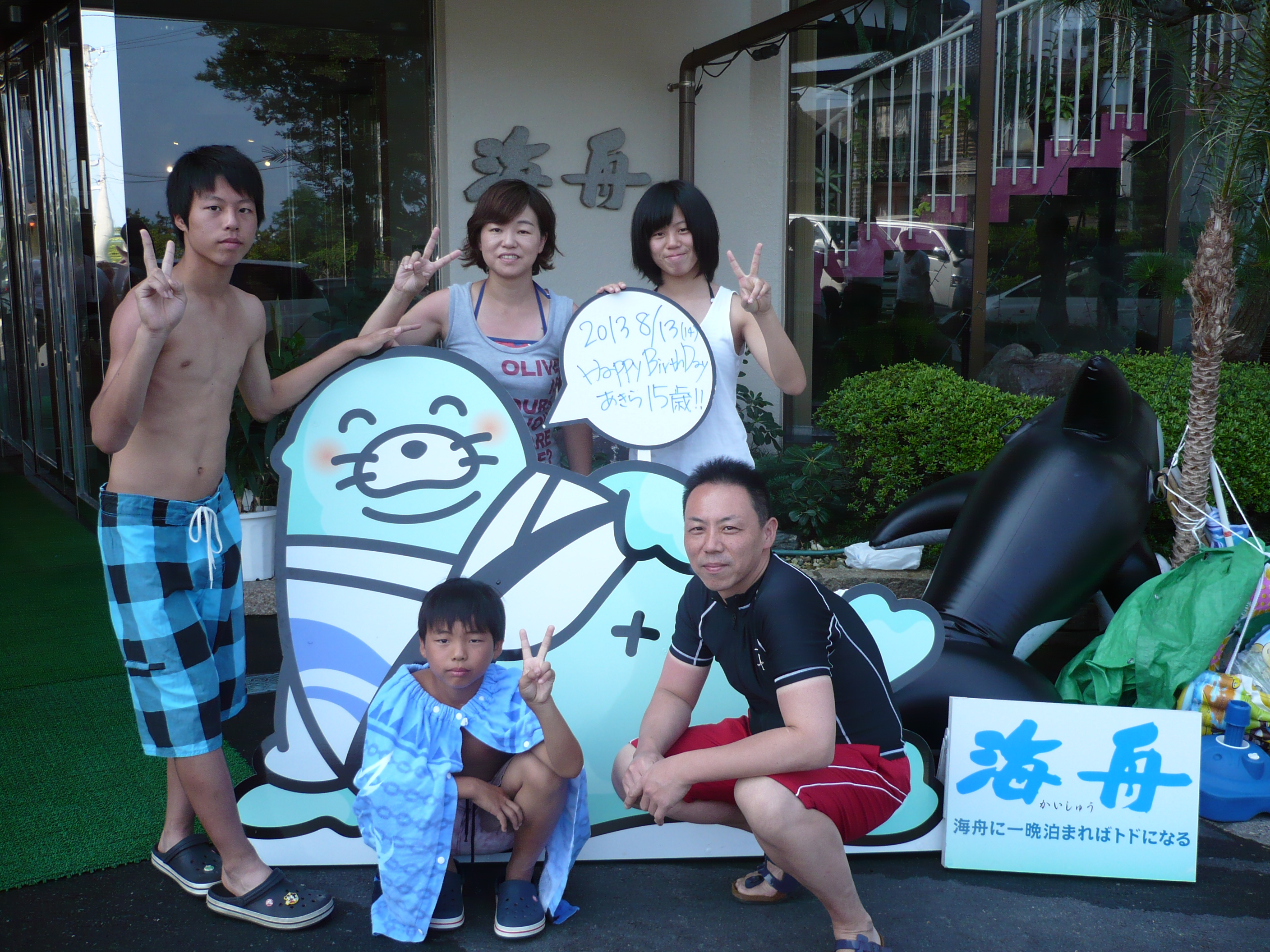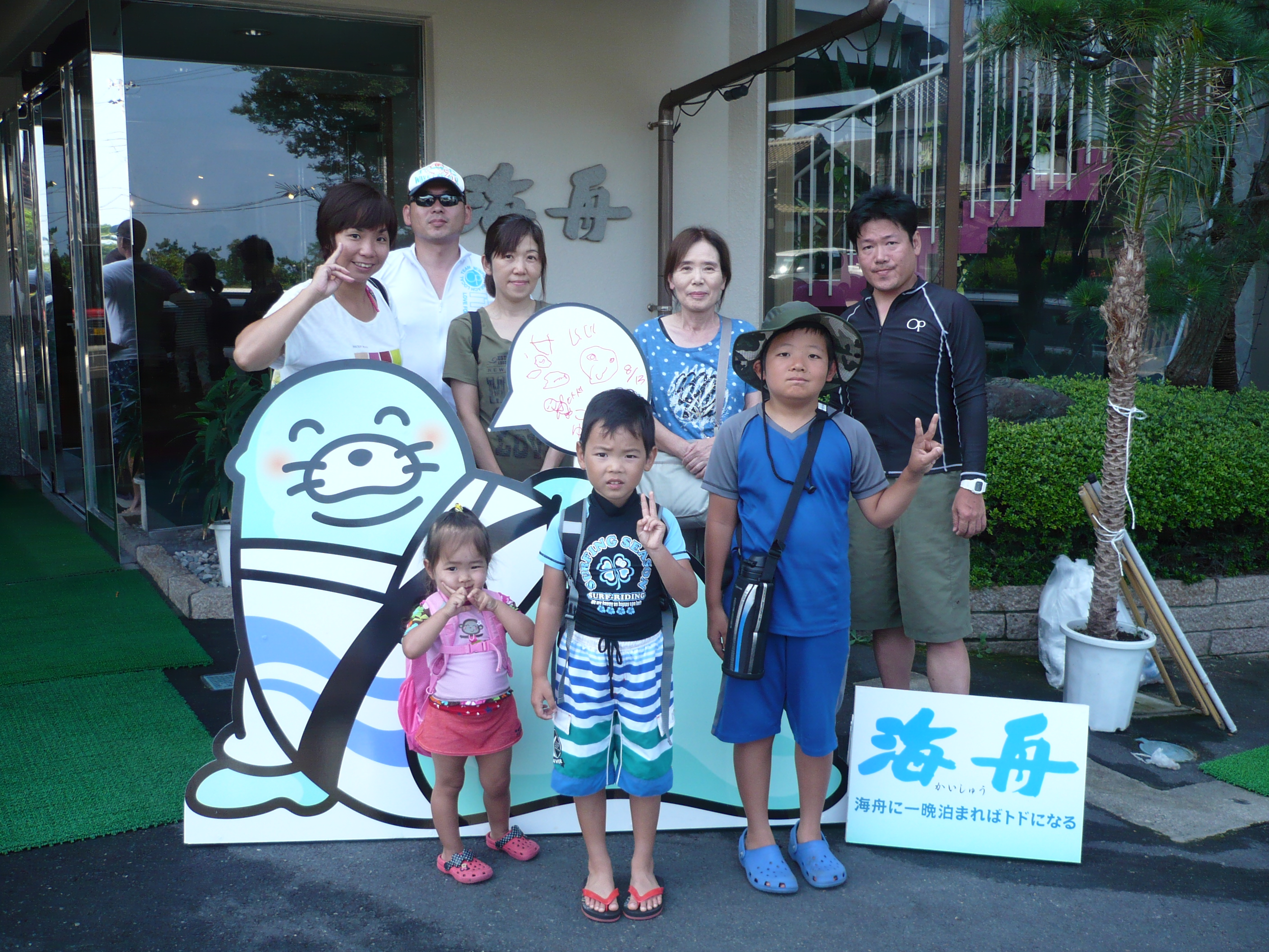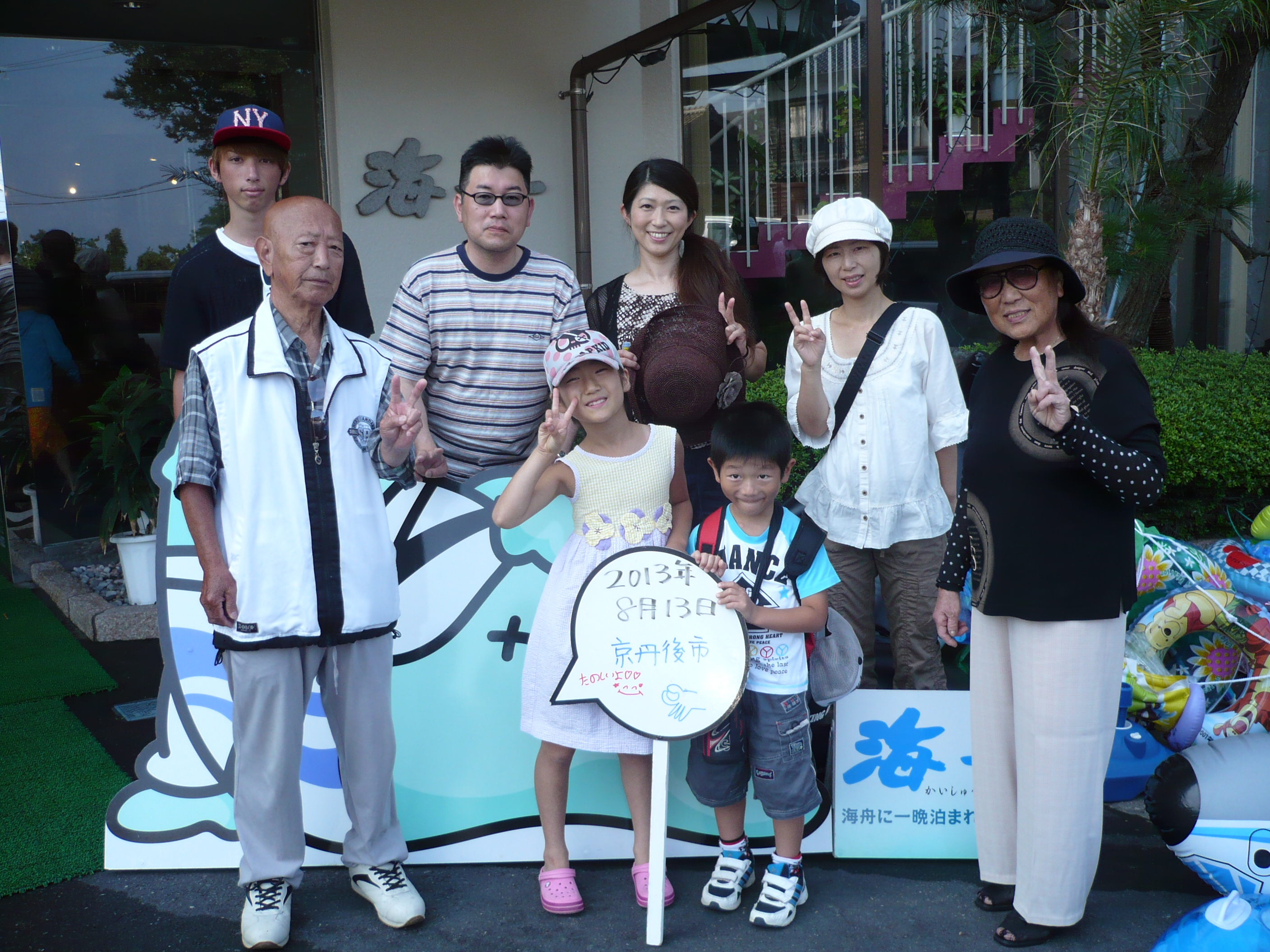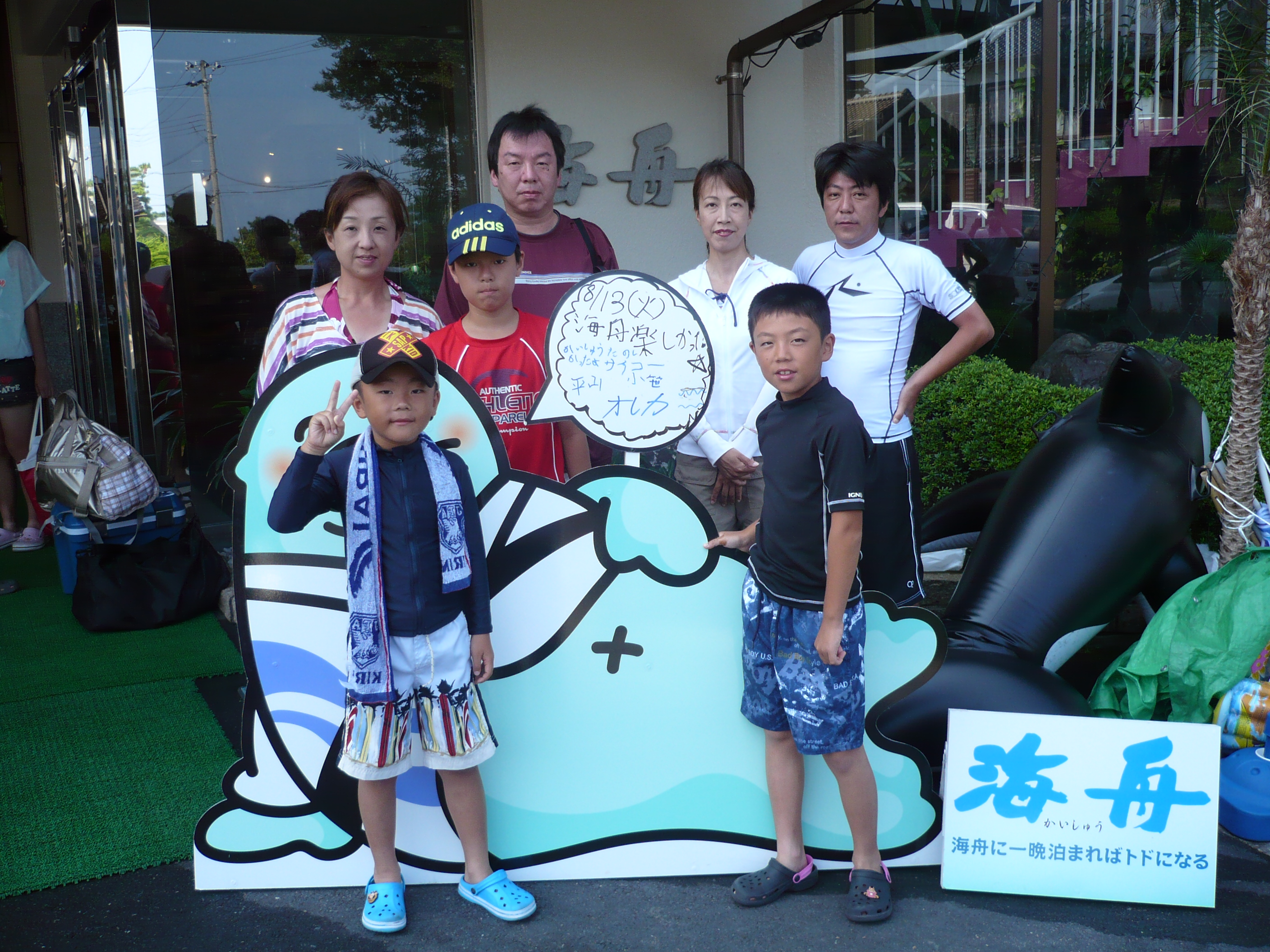 8月13日の記念撮影。 海水浴や夜店のイベントなど、充実した休日をお過ごしいただけましたでしょうか? 皆様のまたのお越しをスタッフ一同心よりお待ちしております。 ご宿泊ありがとうございました。