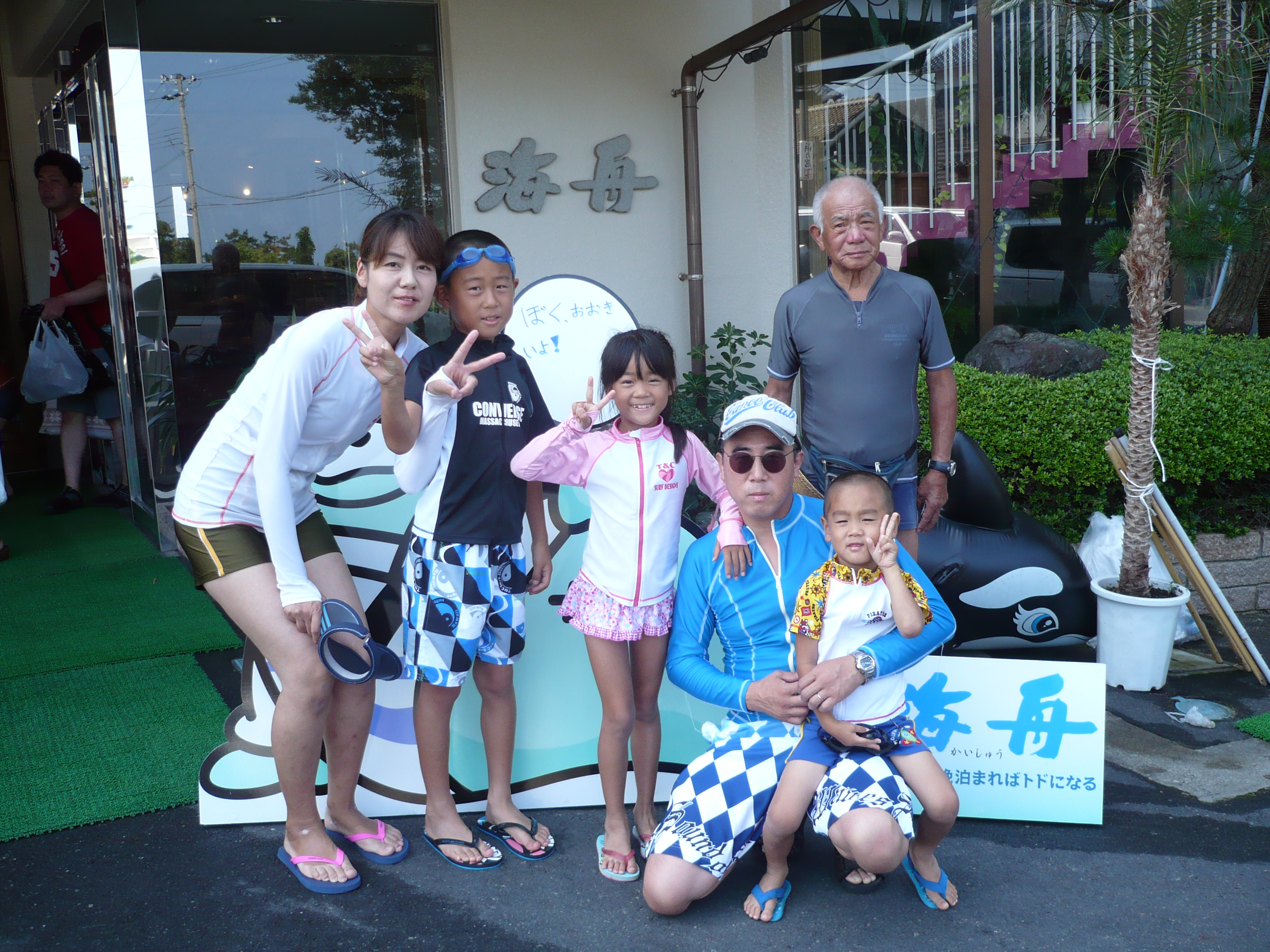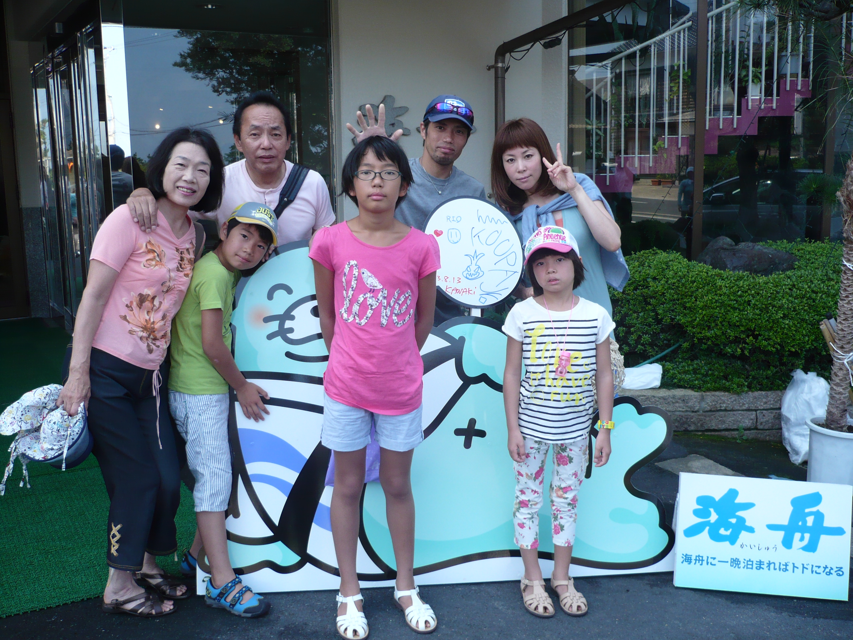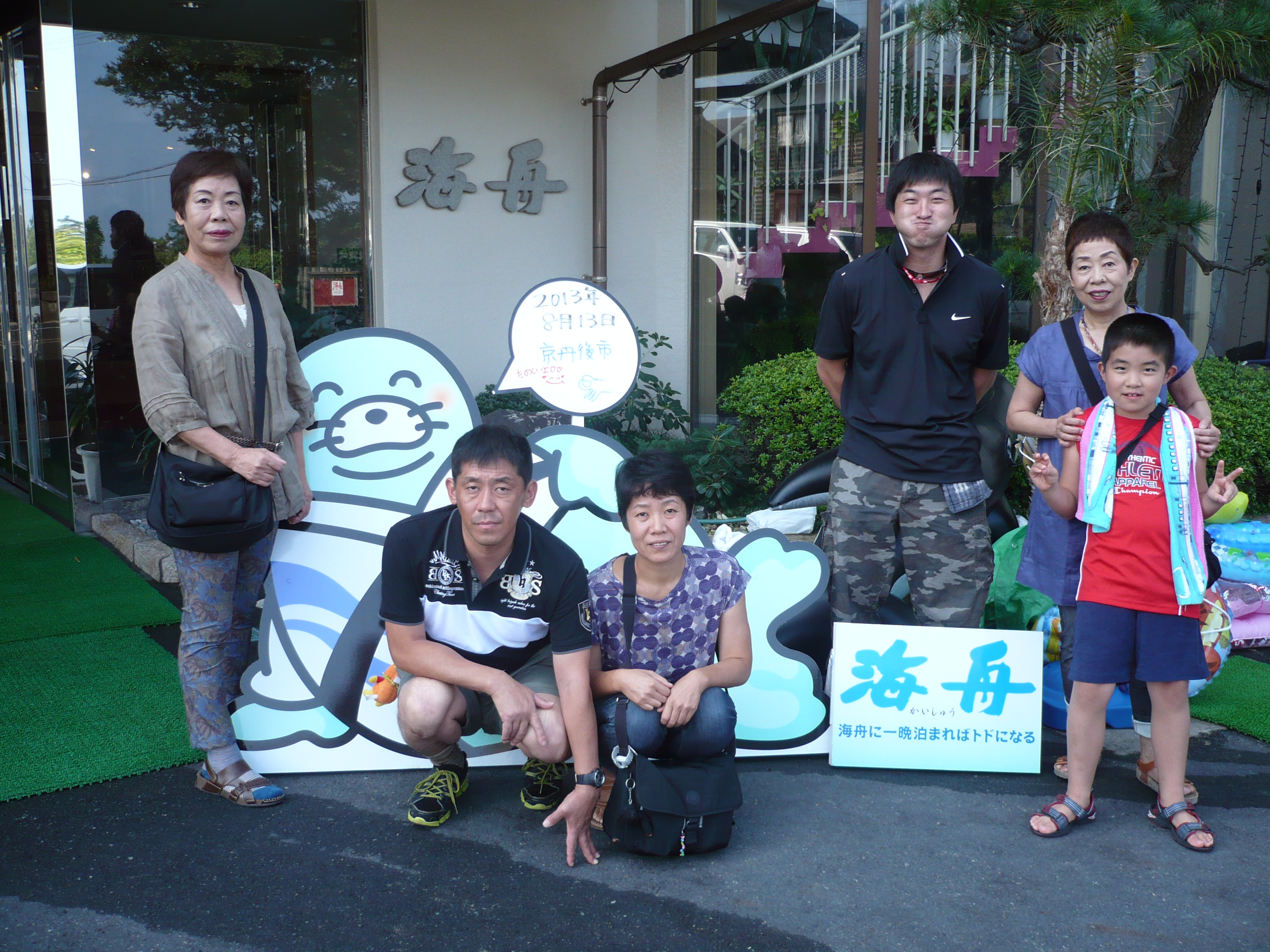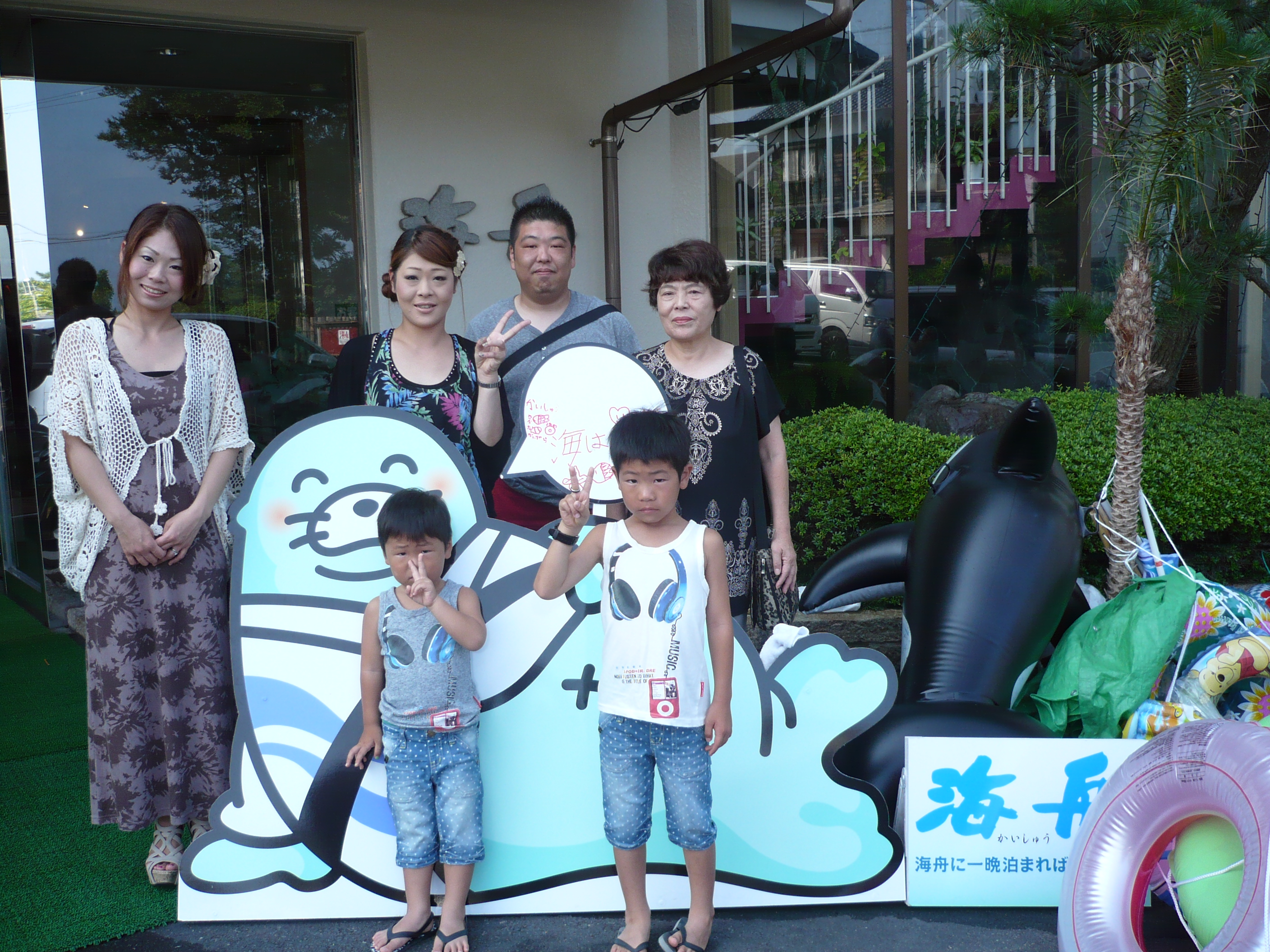 8月13日の記念撮影。 海水浴や夜店のイベントなど、充実した休日をお過ごしいただけましたでしょうか? 皆様のまたのお越しをスタッフ一同心よりお待ちしております。 ご宿泊ありがとうございました。