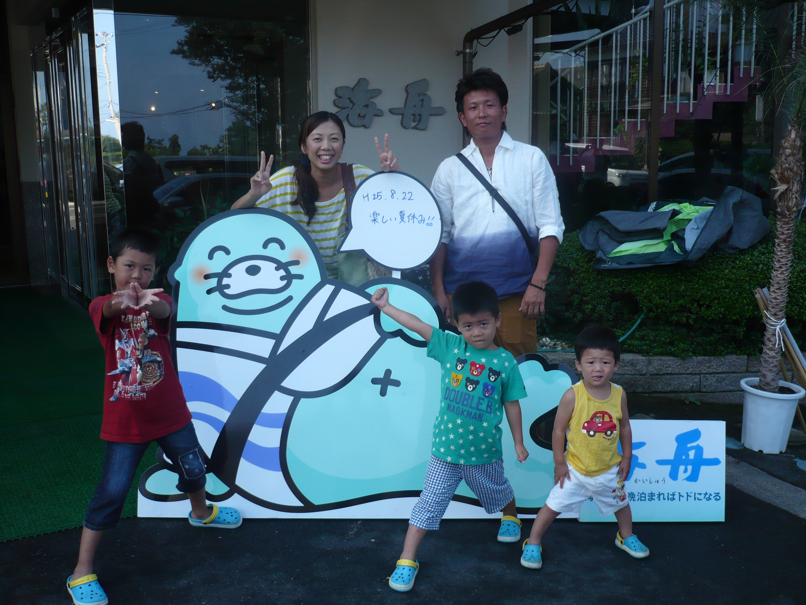 8月22日の記念撮影。 当館の料理・夜店のイベントなどにはご満足いただけましたでしょうか? 皆様のまたのお越しを心よりお待ちしております。 ご宿泊ありがとうございました。
