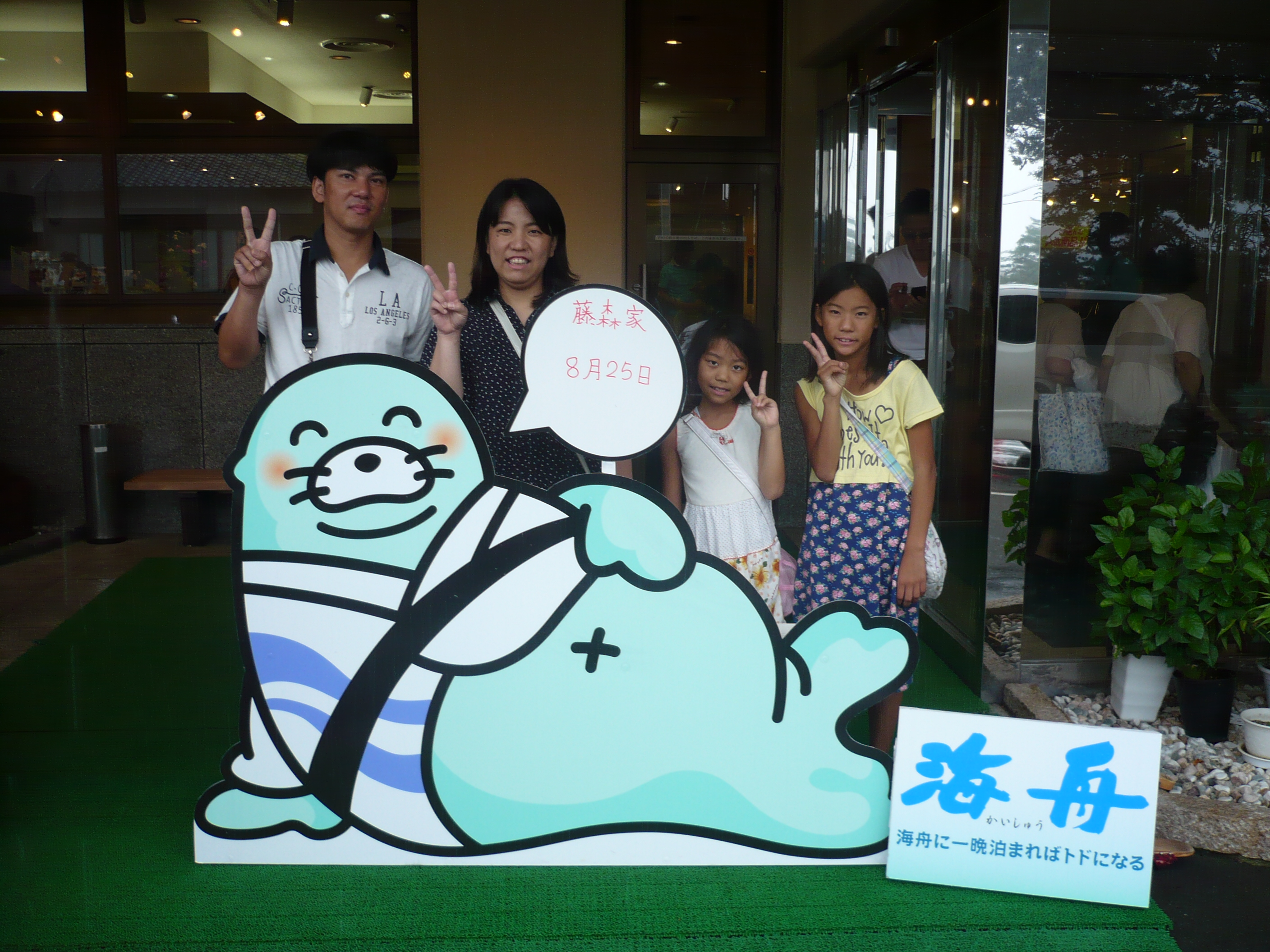 8月25日の記念撮影。 今日は強く雨が降っていたので、玄関前で記念撮影(^_^) 雨の中記念撮影ありがとうございました。 皆様のまたのお越しを従業員一同心よりお待ちしております。 ご宿泊ありがとうございました。
