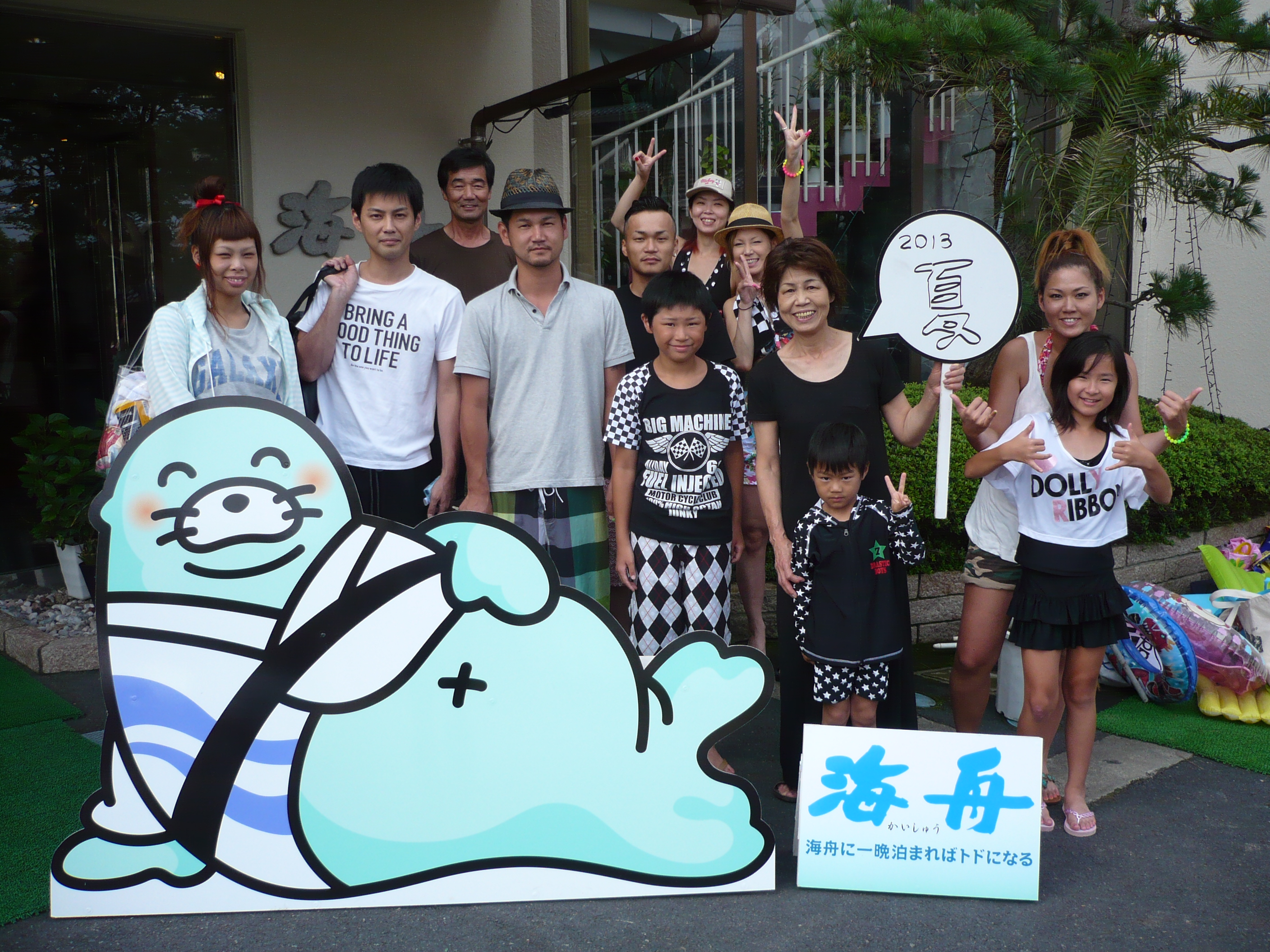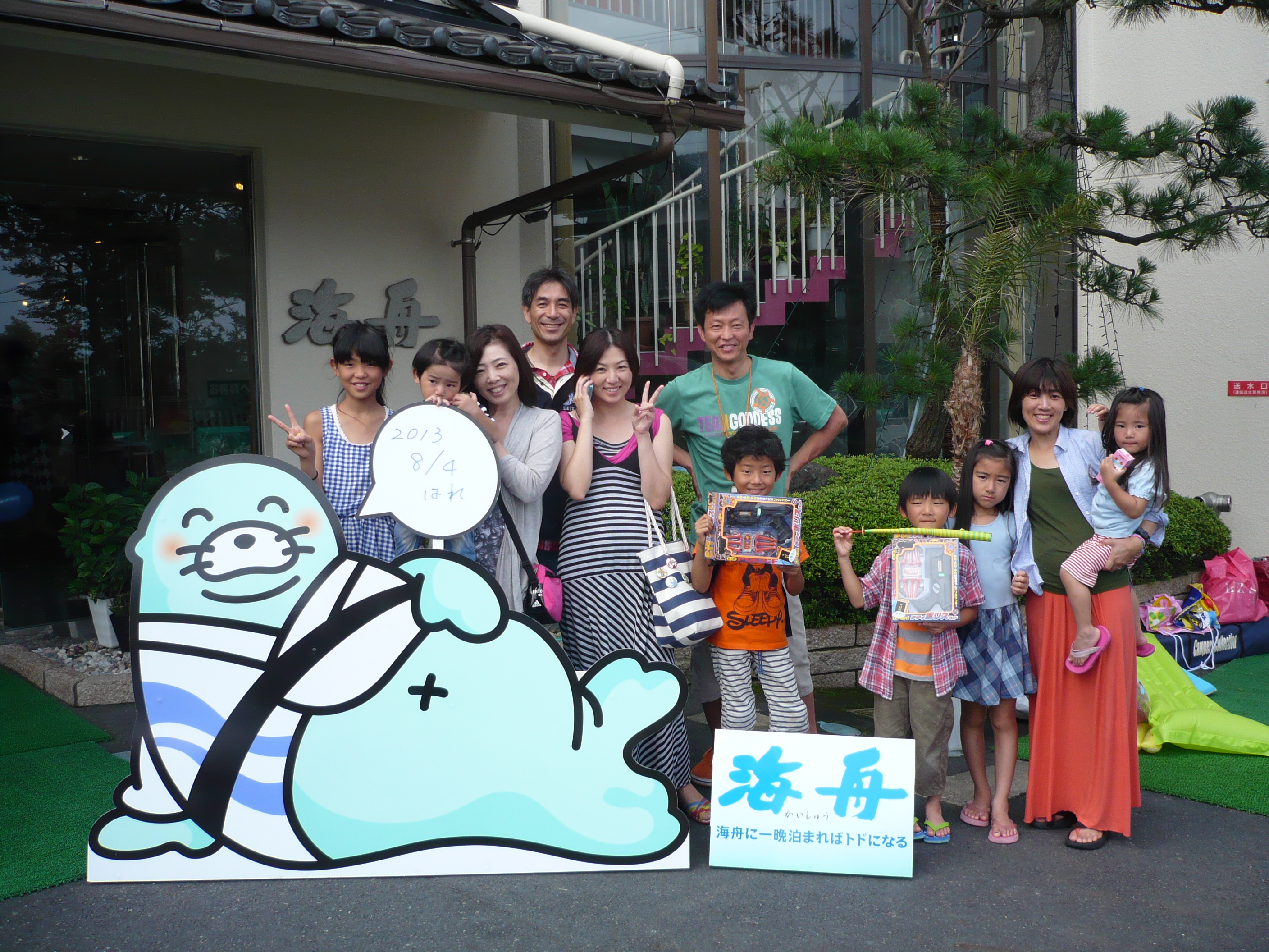 8月4日の記念撮影。 当館でゆっくりお寛ぎいただけましたでしょうか?? 当館で過ごした時間が 夏の楽しい思い出になりましたら幸いです。 皆様のお帰りをスタッフ一同心よりお待ちしております。 ありがとうございました。