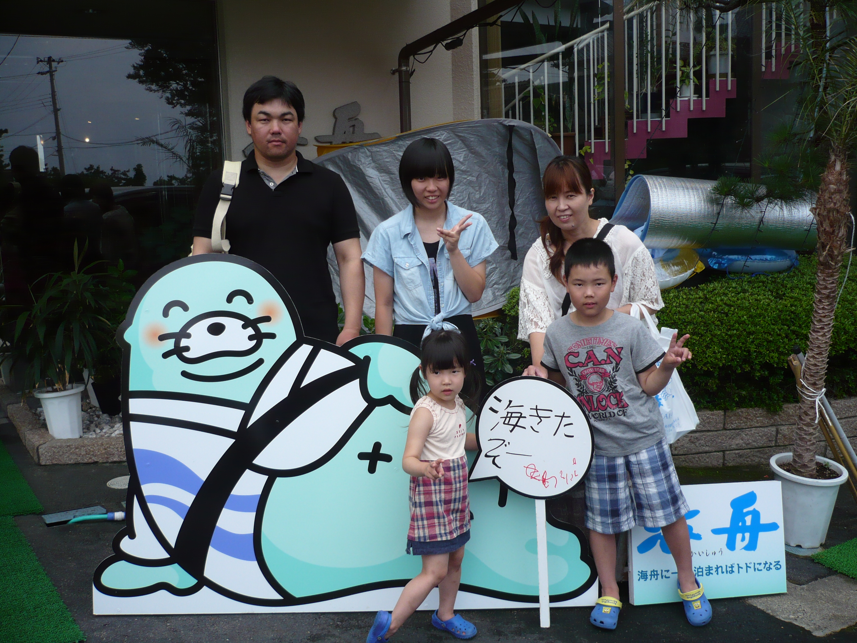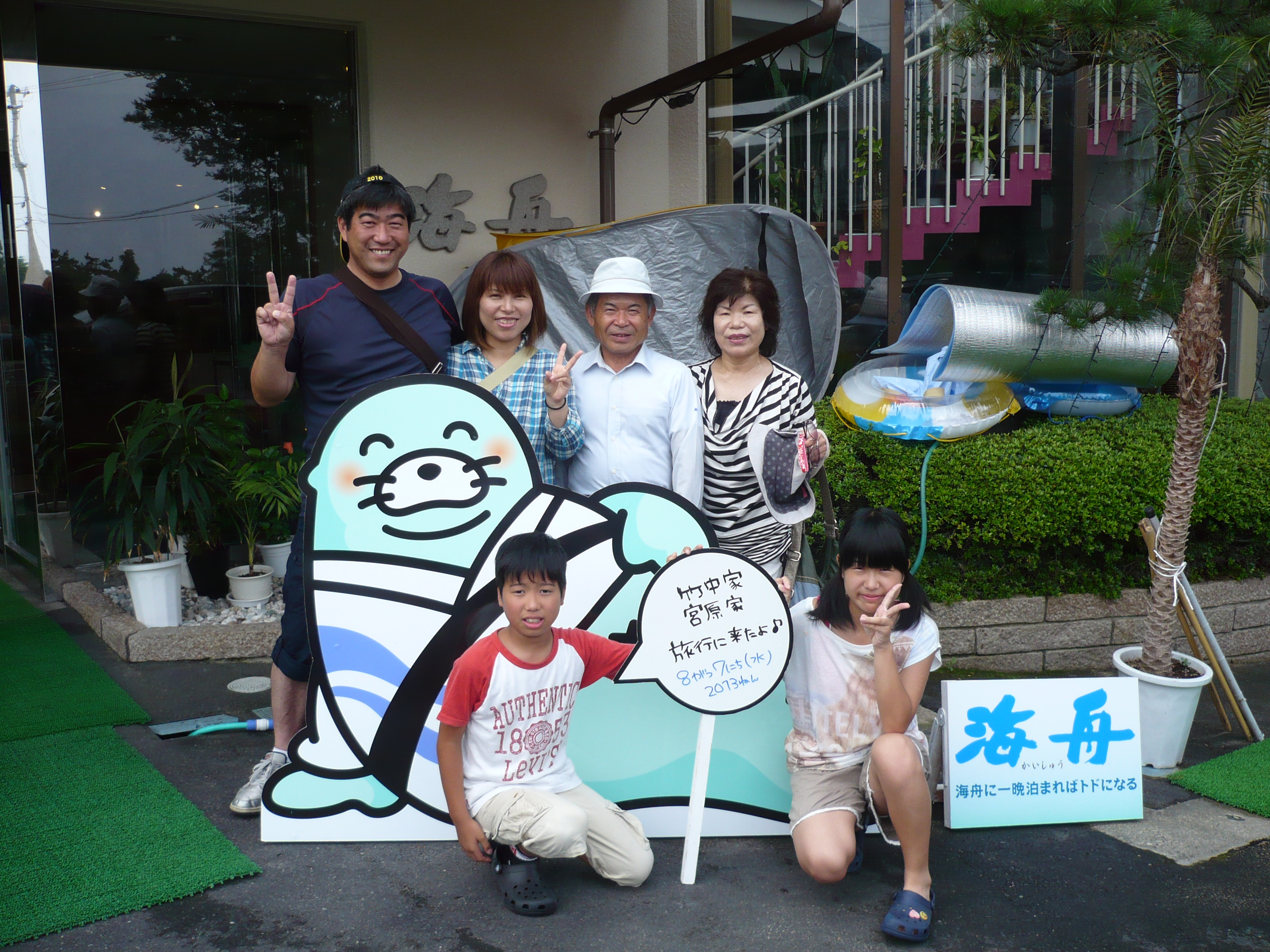 8月7日の記念撮影。 当館のお料理にはご満足いただけましたでしょうか? また来年も夏の思い出作りに来て下さいね(^o^)丿 皆様のお帰りをスタッフ一同心よりお待ちしております。 ご宿泊ありがとうございました。