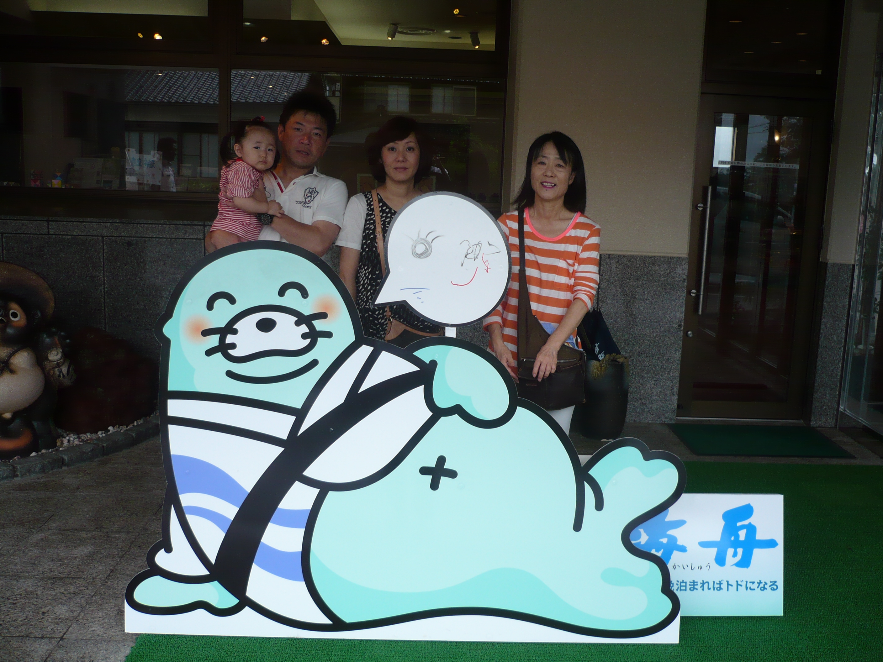 9月8日の記念撮影。 お子様がメッセージボードに上手に絵を描いてくれました(^_^) またのお越しをスタッフ一同心よりお待ちしております ご宿泊ありがとうございました。