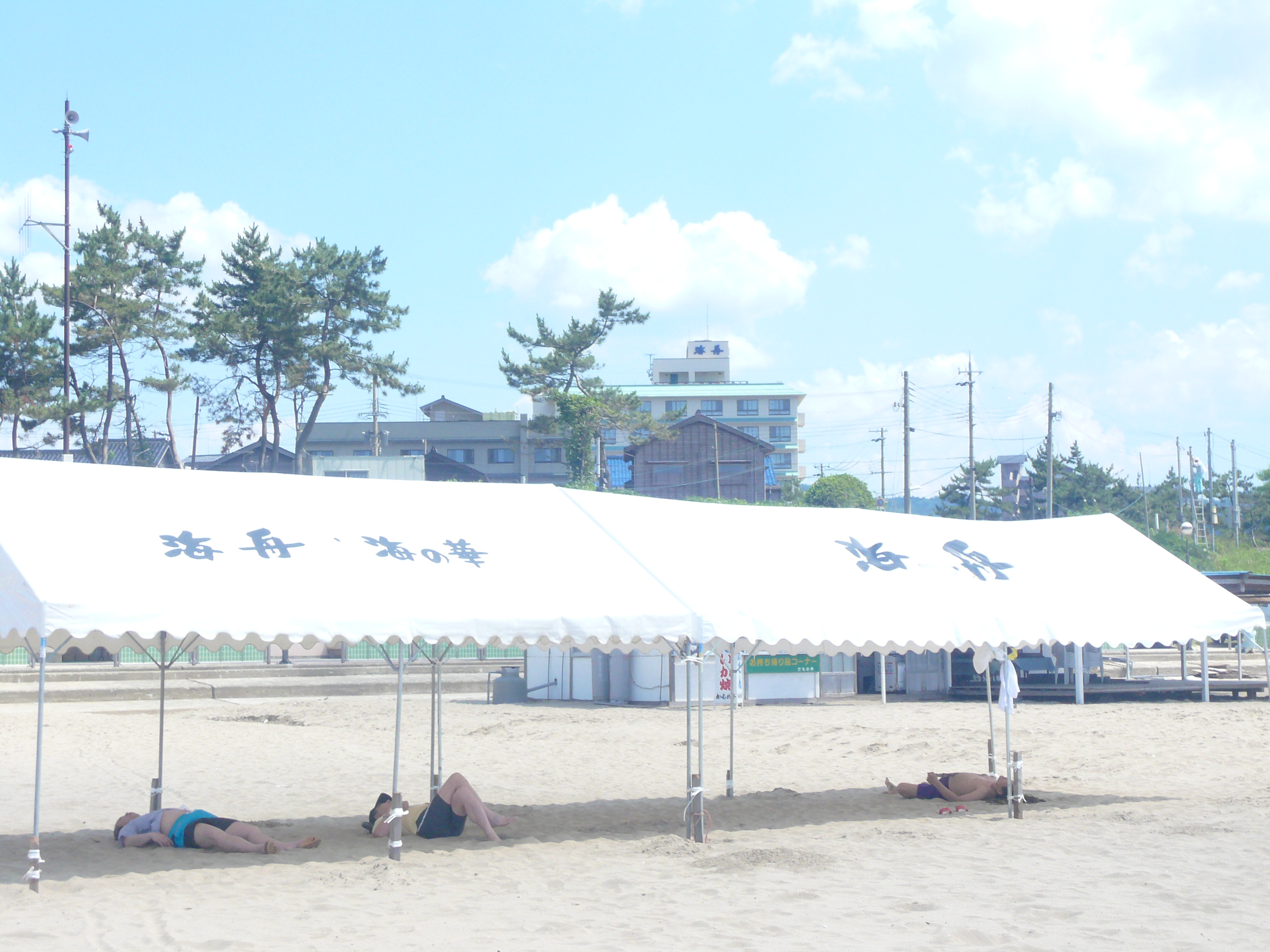 7月5日にリニューアルオープンをして、今日は前の海水浴場にテントを設営しました。