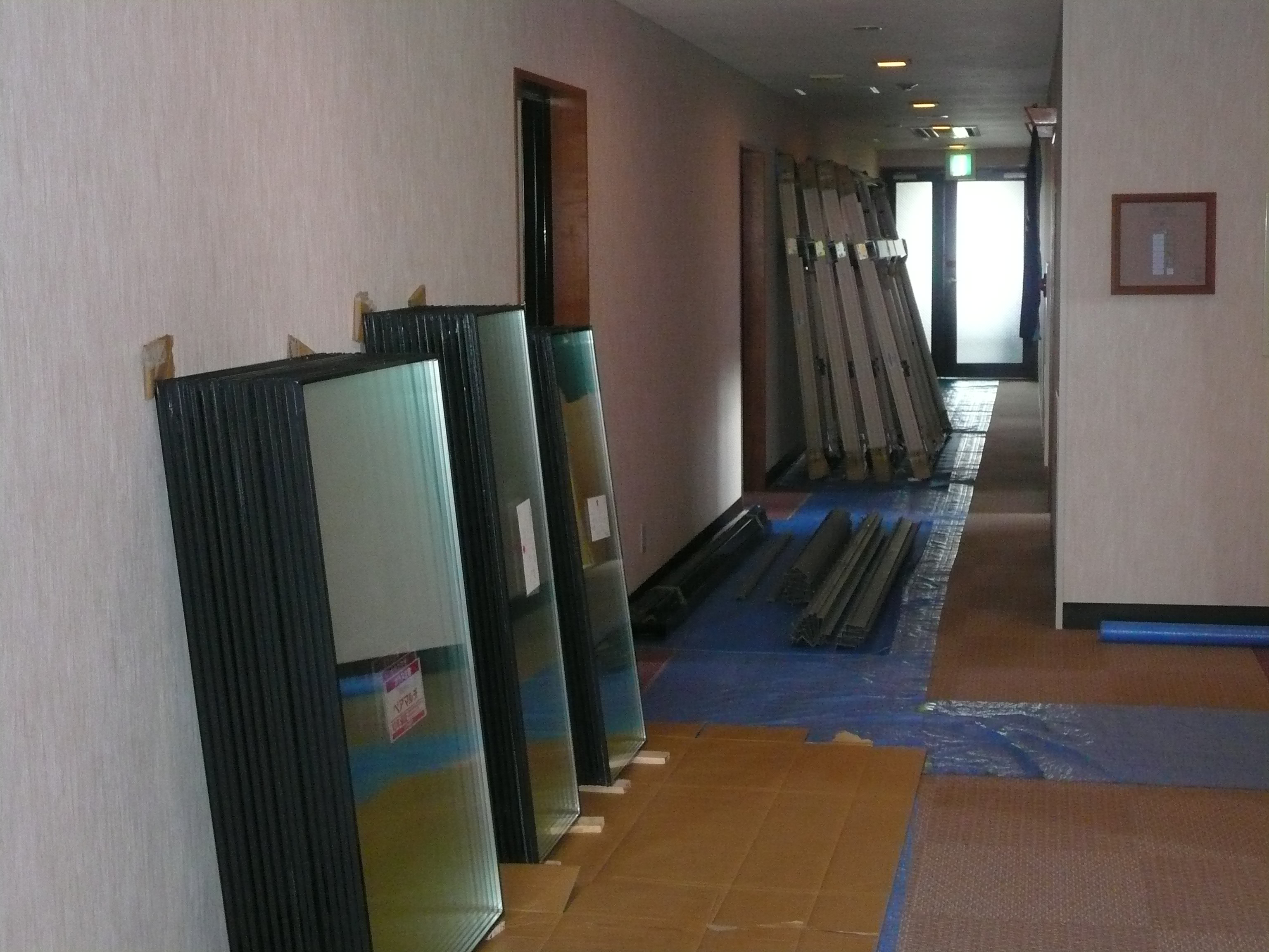 そして、運び込まれたサッシは客室棟へ移動し、次の出番まで待機中です。(-_-)zzz