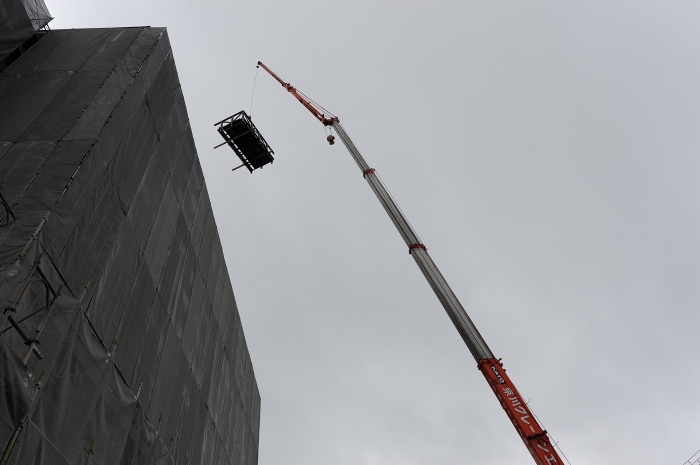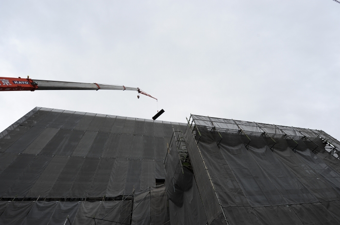 屋上の防水工事をするのに一旦地上に降ろしていた展望デッキを再び屋上に戻しました。 工事中とはいえ展望デッキのない屋上は寂しかったですが、またここで夕日を見ていただけます(^^) 外壁の修繕と塗装がもうすぐ終わります。
