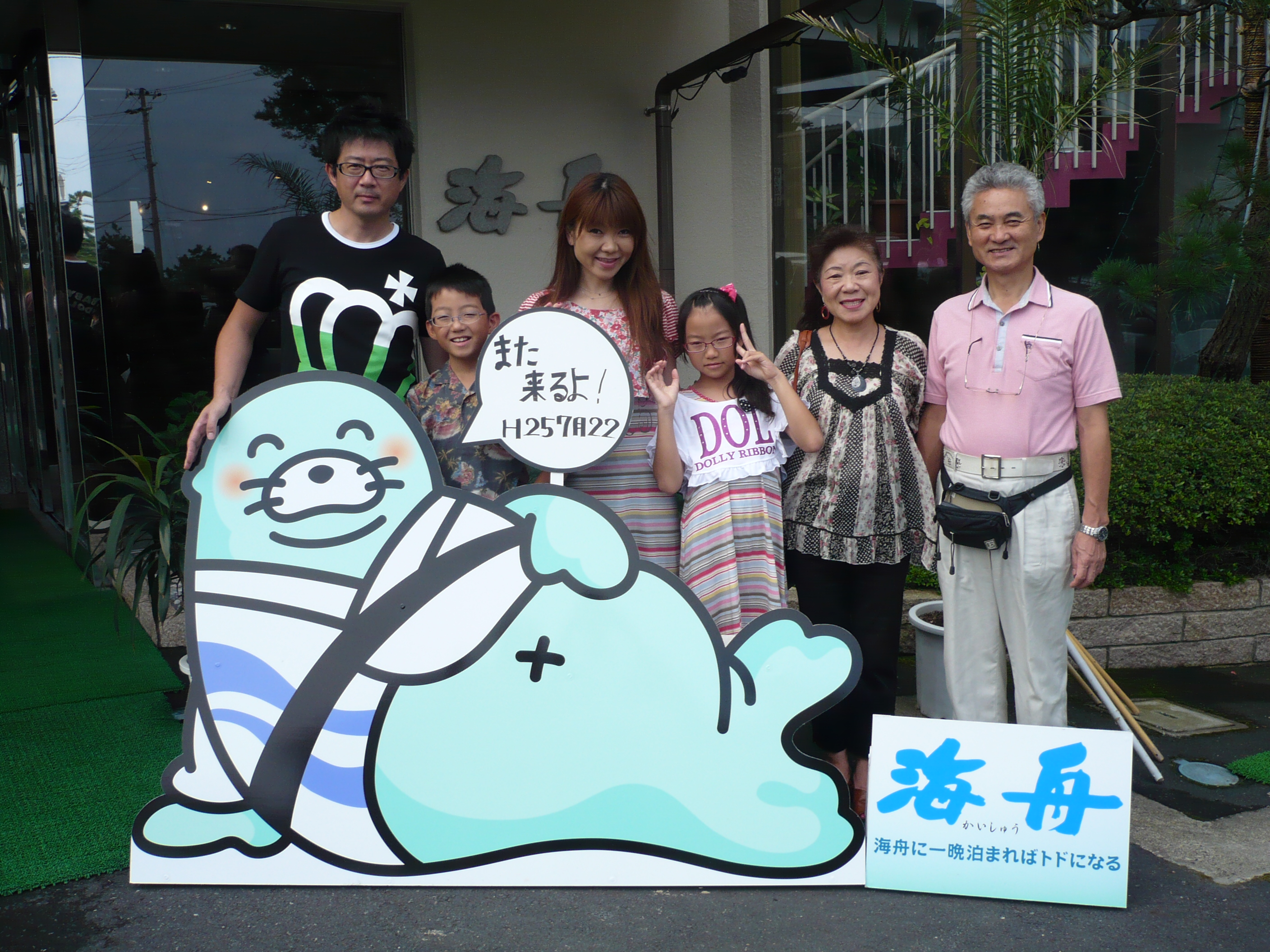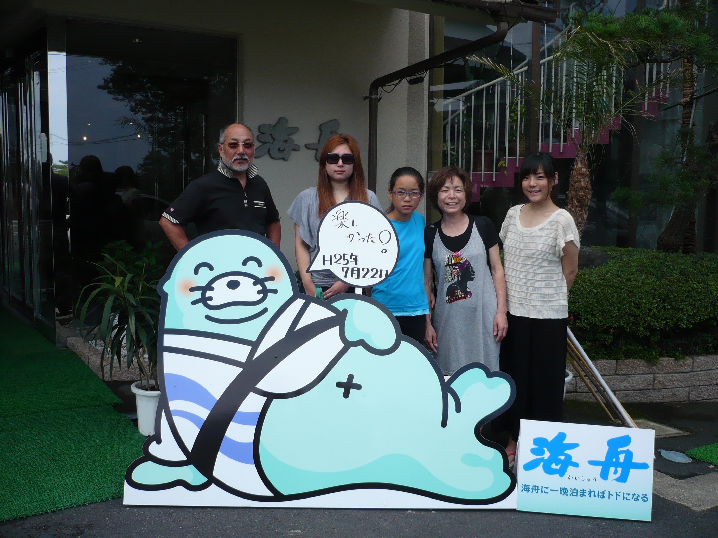 当館の料理や海水浴にご満足いただけましたでしょうか? 皆様のお帰りをスタッフ一同お待ちしております。 ご宿泊ありがとうございました。
