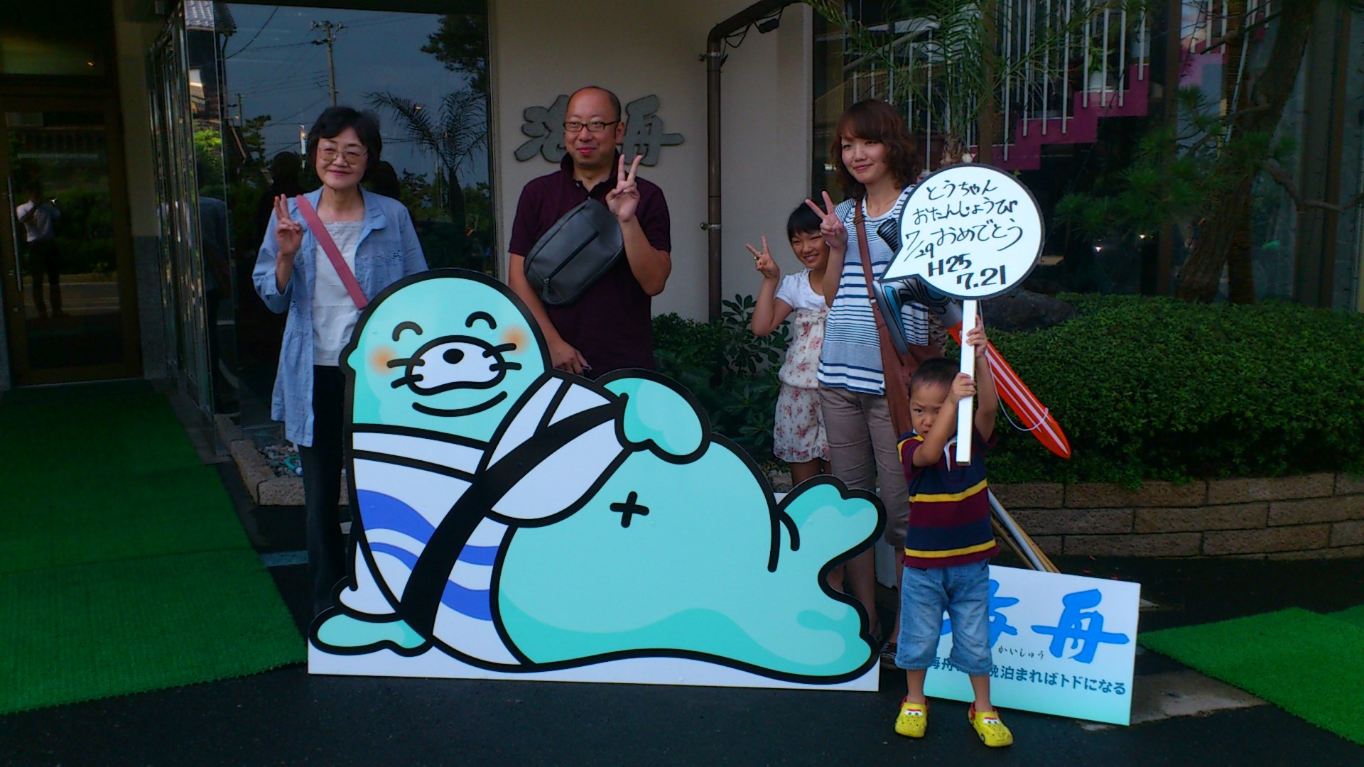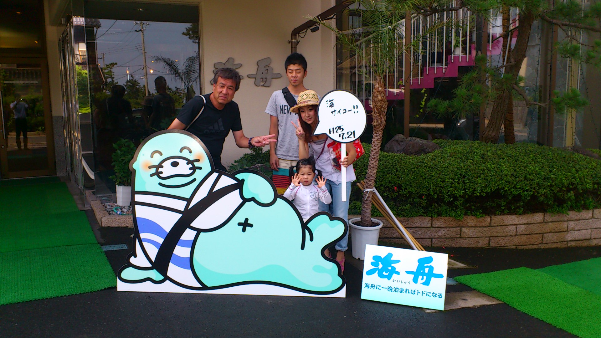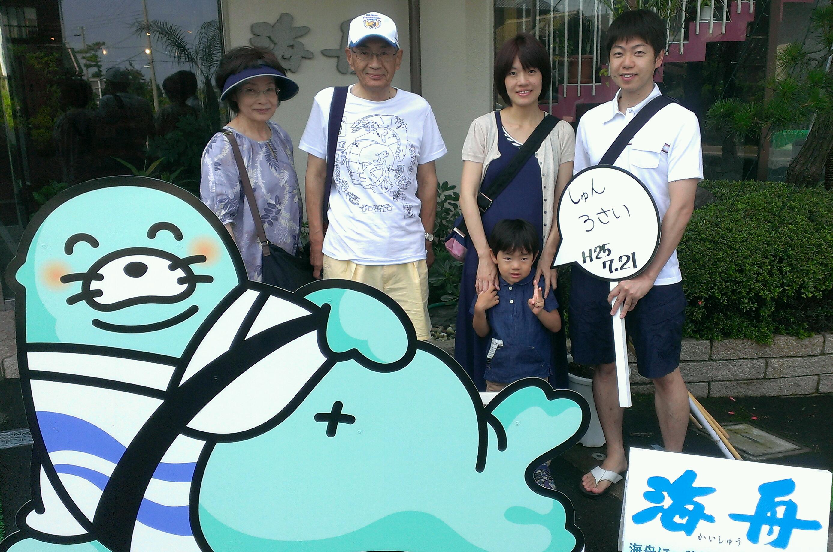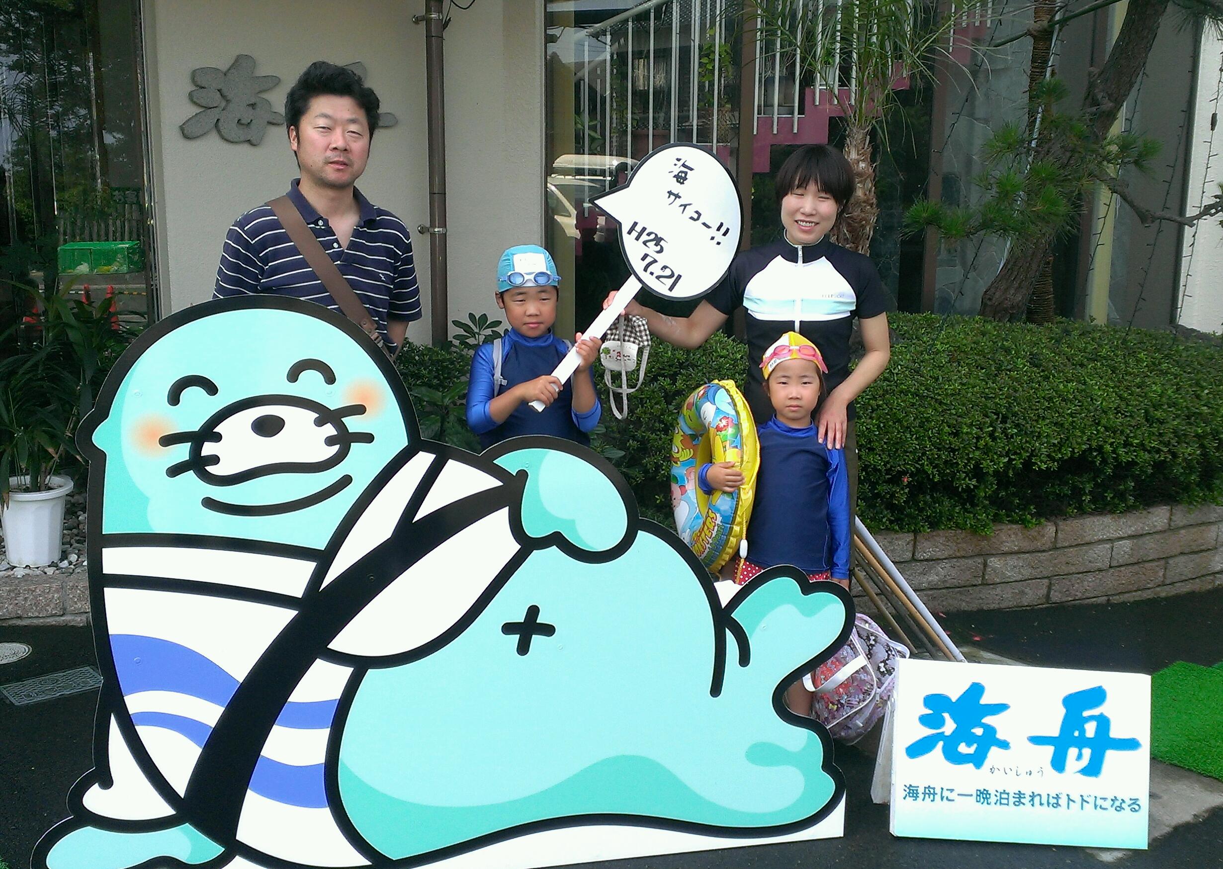 海舟マスコットとの記念撮影。 皆様ブログ掲載を快くOKしてくださいました(^_^) 昨日は土曜日なので家族連れのお客様が多かったです。 ご宿泊ありがとうございました。 またのお越しをお待ちしております♪